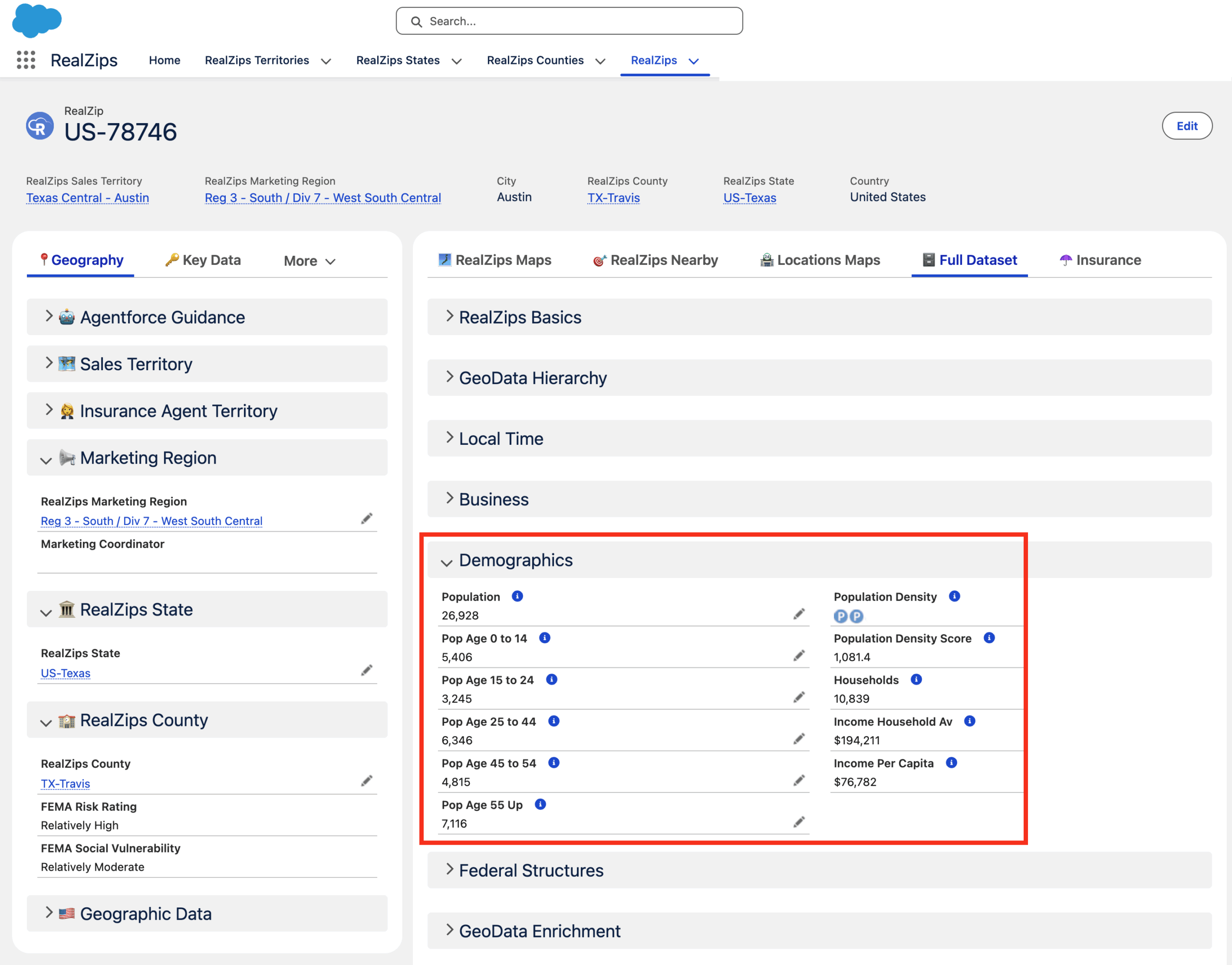 When the RealZips GeoData is in place, your customer data in Salesforce.com can be put to use like never before: