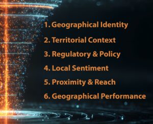 These include geographical identity markers, territorial context with owner assignments, regulatory warning flags, and local sentiment indicators. Proximity zones and geographic performance metrics are critical layers for identifying and removing bottlenecks.