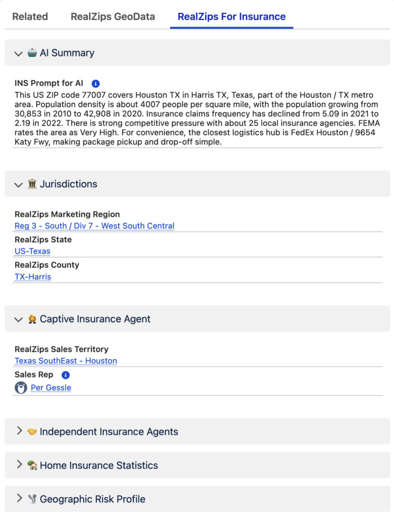 - AI without Hallucinations: AI is only as good as the data you feed it. RealZips provides geo-verified, grounded metadata. When you ask Agentforce to “Draft a summary for this opportunity, including local incentives,” it uses verified RealZips data to produce a compliant brief.
